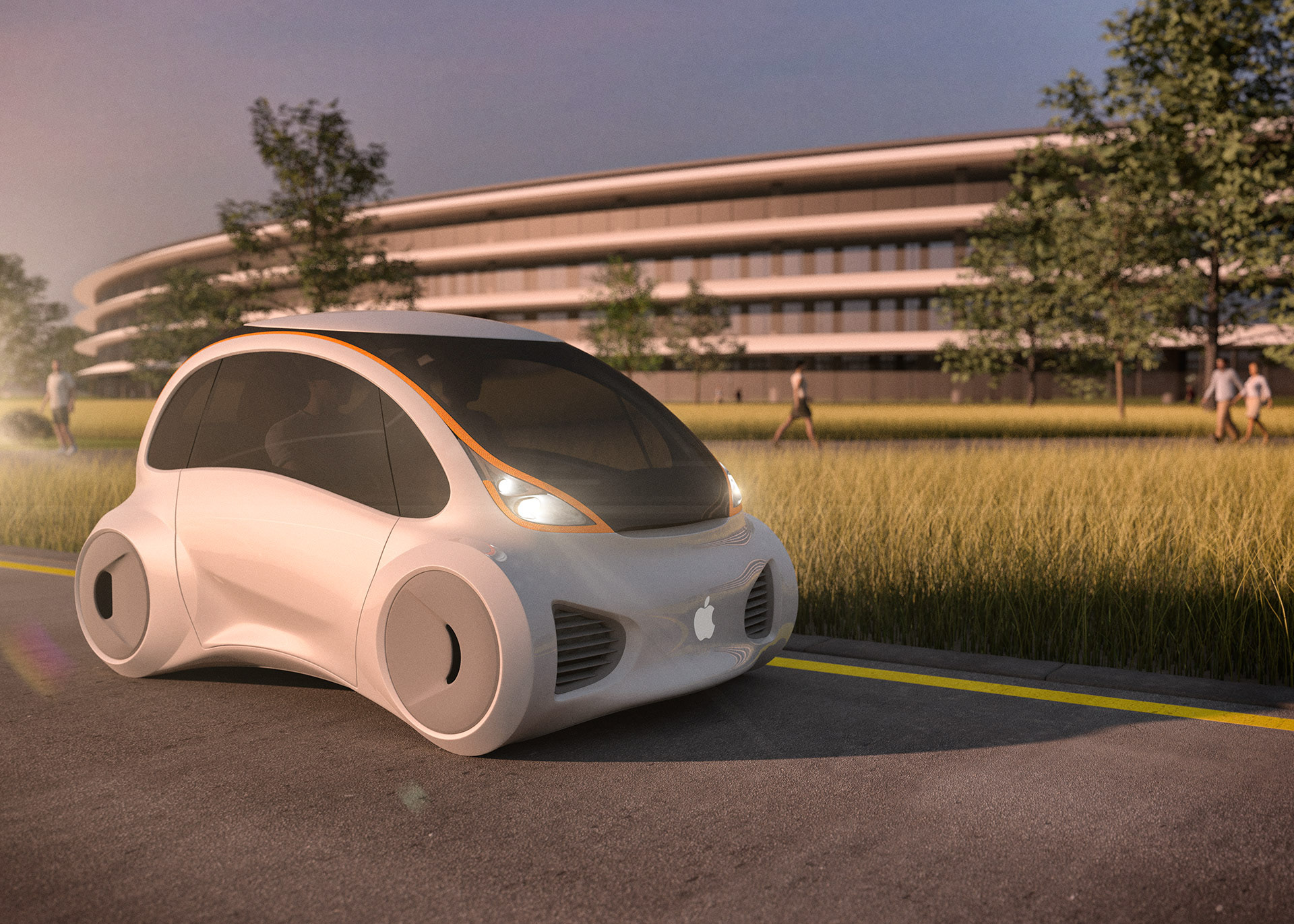 Apple Car concept from 2015, set in the grounds of the new Apple Campus.